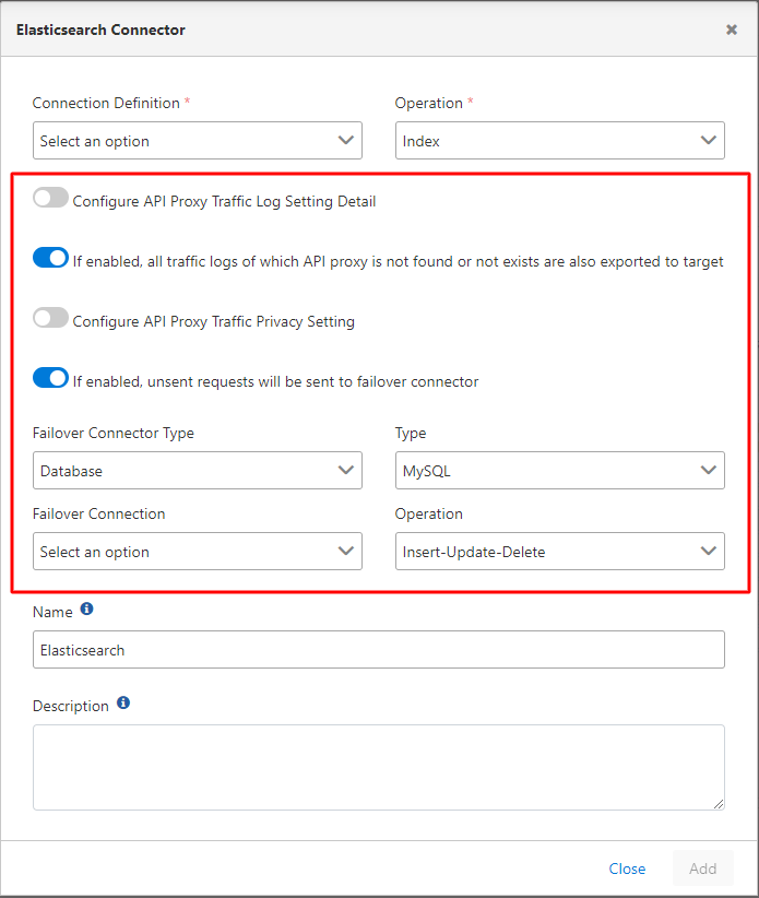 If enabled, all traffic logs of which API proxy is not found or not exists are also exported to target | With this setting, if desired, all traffic logs where API Proxy is not present or not available are also transferred to the target. |