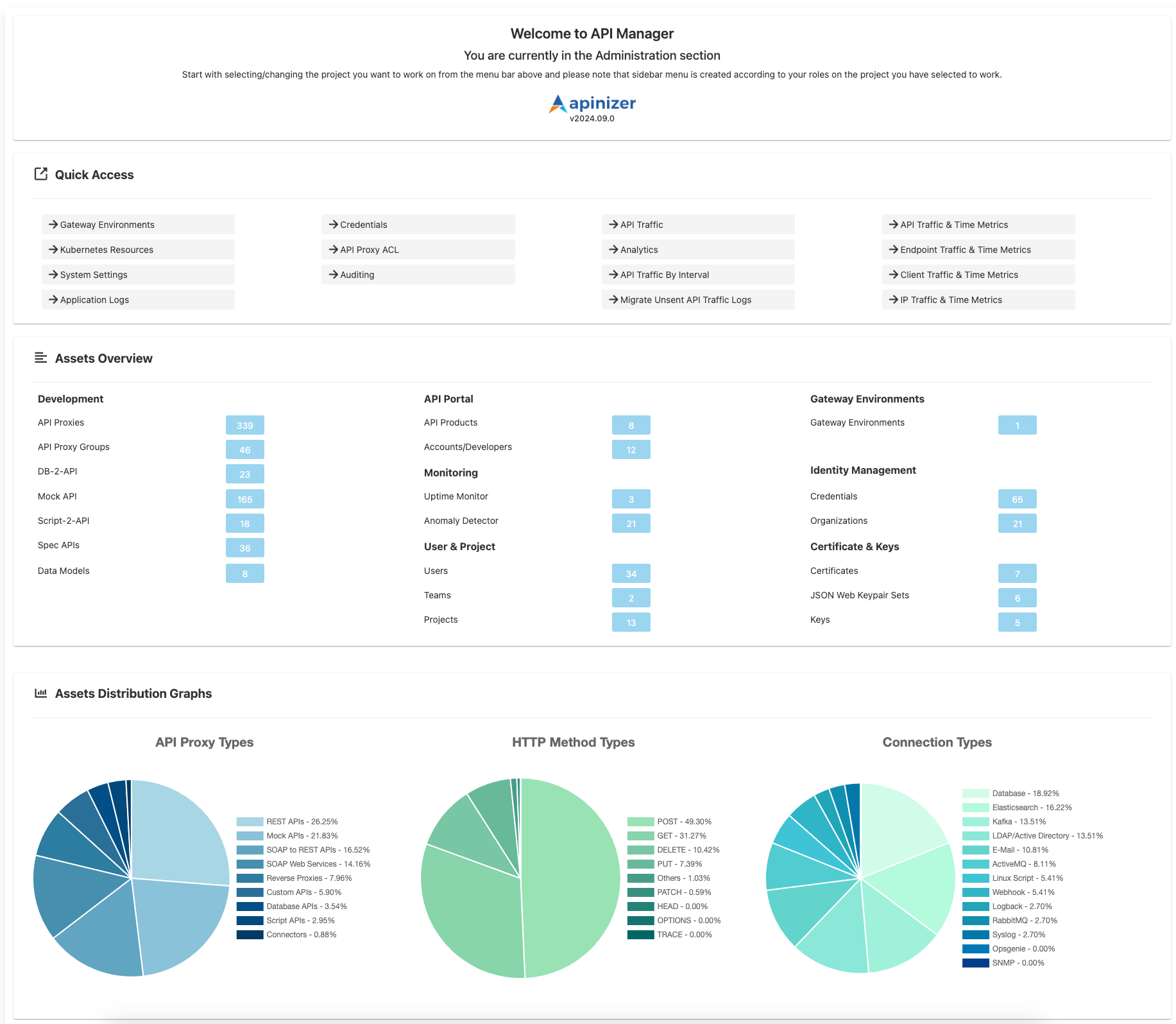 Apinizer Documentation Administration Guide Current: Administration Overview Administration Overview Overview is designed to get information about the general status in Apinizer API Manager.The image containing the Overview screen is given below: ×