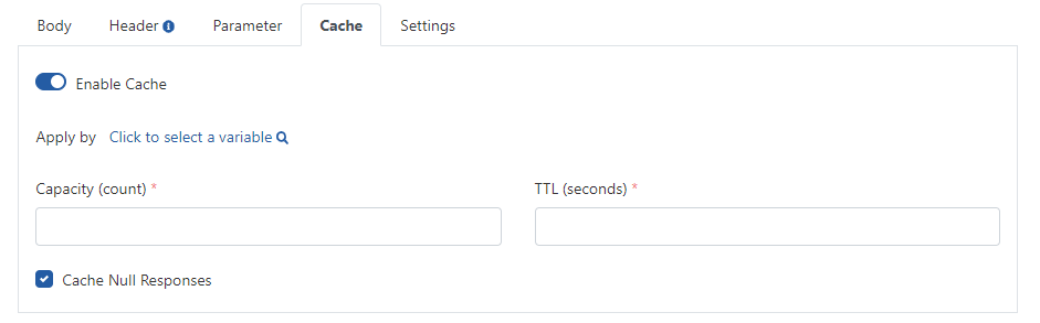 Capacity | The maximum number of responses that can be stored in the cache. |