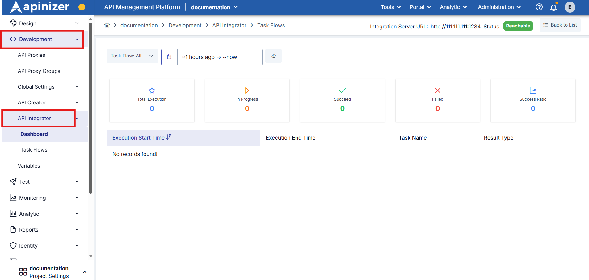 You can access API Integrator (Task Flow Manager) under the Development tab in the navigation bar on the left side of the Task Flow Manager screen.