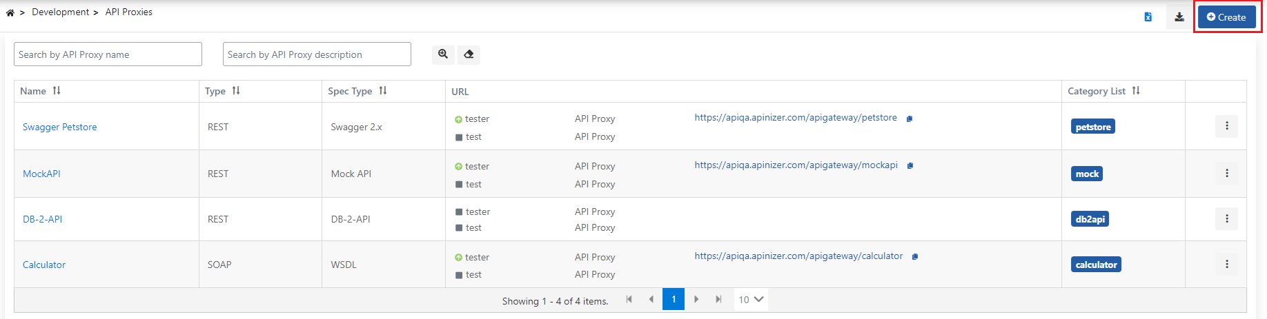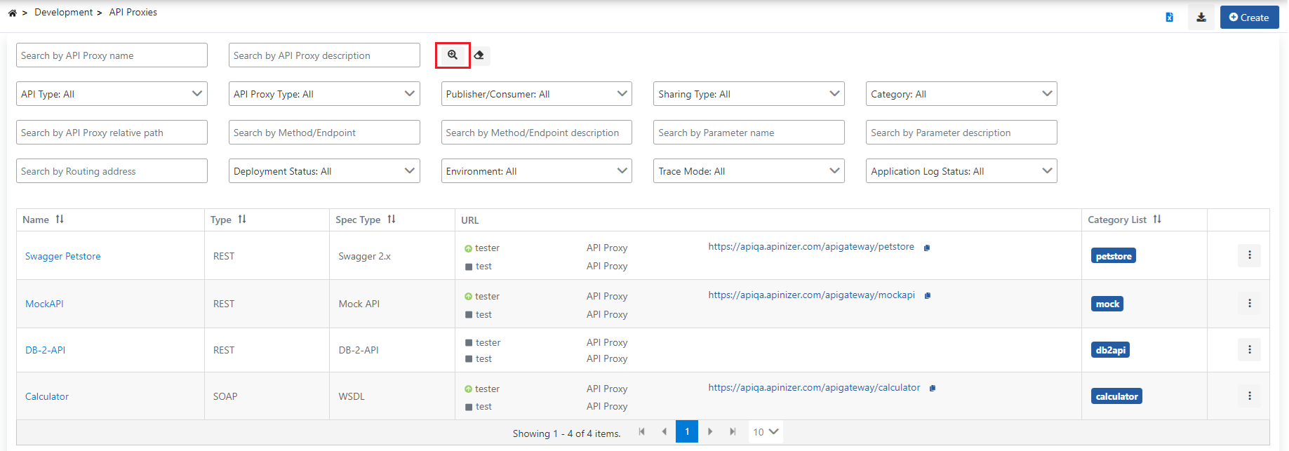 Search by API Proxy description | API Proxy records, of which description contains the value entered in this filter field, are displayed. It is case-insensitive. |