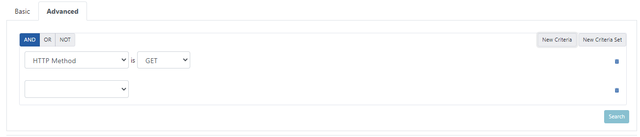 In the Basic tab, it is possible to filter the records with certain criteria such as a certain time interval, endpoint or HTTP method.