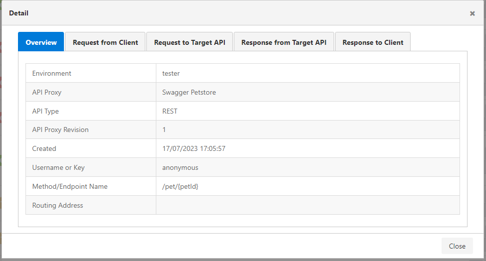 On the API Traffic screen, all requests and responses to API Proxies in the project are listed with their details. In particular, it makes it easy to investigate a problem in the message.