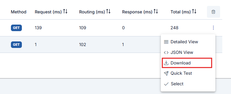 Apinizer, adım adım izleme modundayken, API Proxy için işletilen bütün politikalar için de ayrıntılı bir şekilde log kayıtları oluşturur. İndirme seçeneği, istek bazlı olarak oluşturulan bütün log kayıtlarını topluca indirme olanağı sağlar.