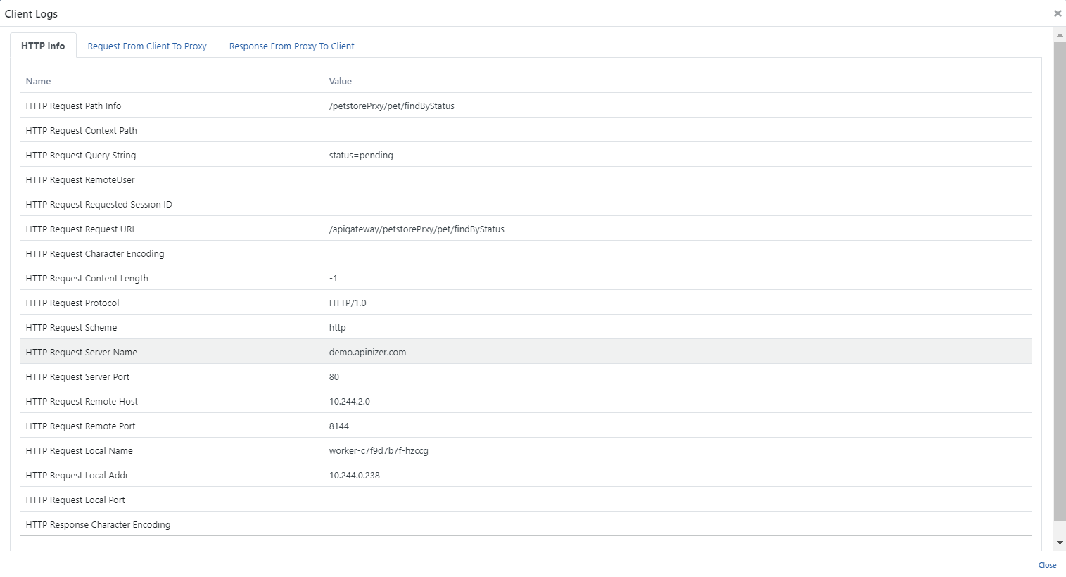 Üçüncü sekmede ise API Proxy'den istemciye döndürülen mesajın detayları vardır.