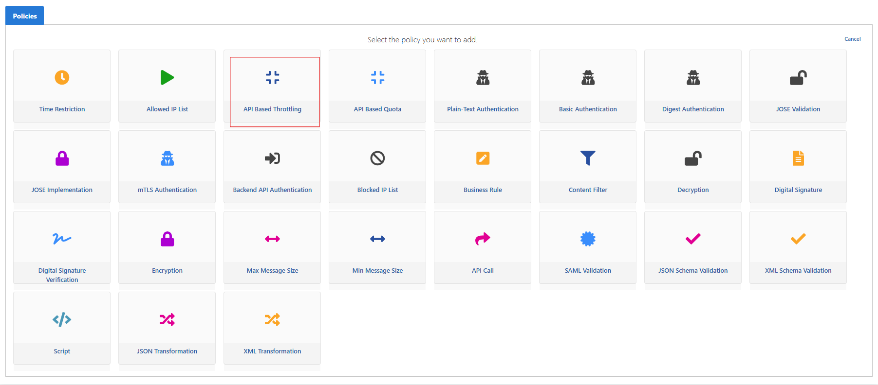 Politika olarak API Based Throttling ekliyoruz.