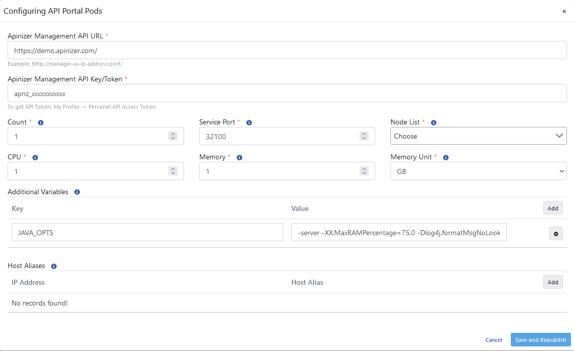 image: apinizercloud/apiportal:<APINIZER_VERSION>