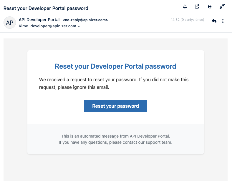 E-posta şablonunda {{api_name}} kullanılırsa → Bildirimin ilgili olduğu API ürününün adı otomatik olarak o yere yazılır.