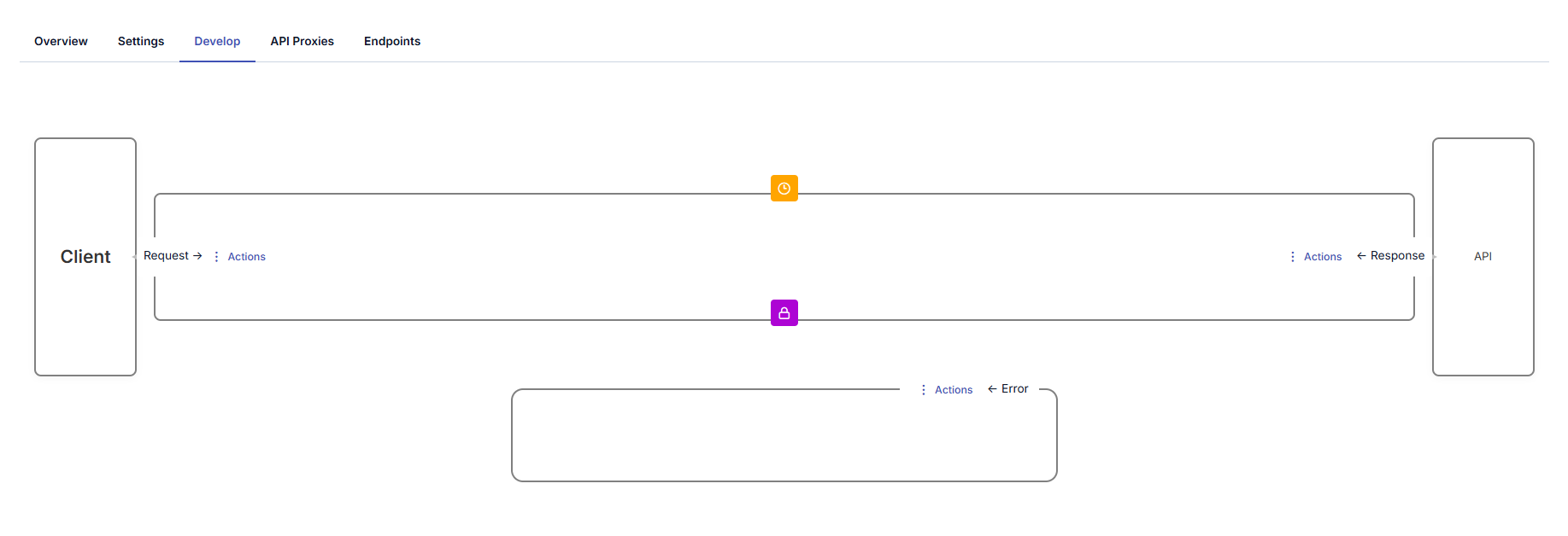 Geliştirme sekmesinde API Proxy Grubunun politikaları yönetilir. Detaylı bilgi için API Proxy için politikaların nasıl yönetildiğinin anlatıldığı Geliştirme Sekmesi (Development Tab) sayfasına bakınız.