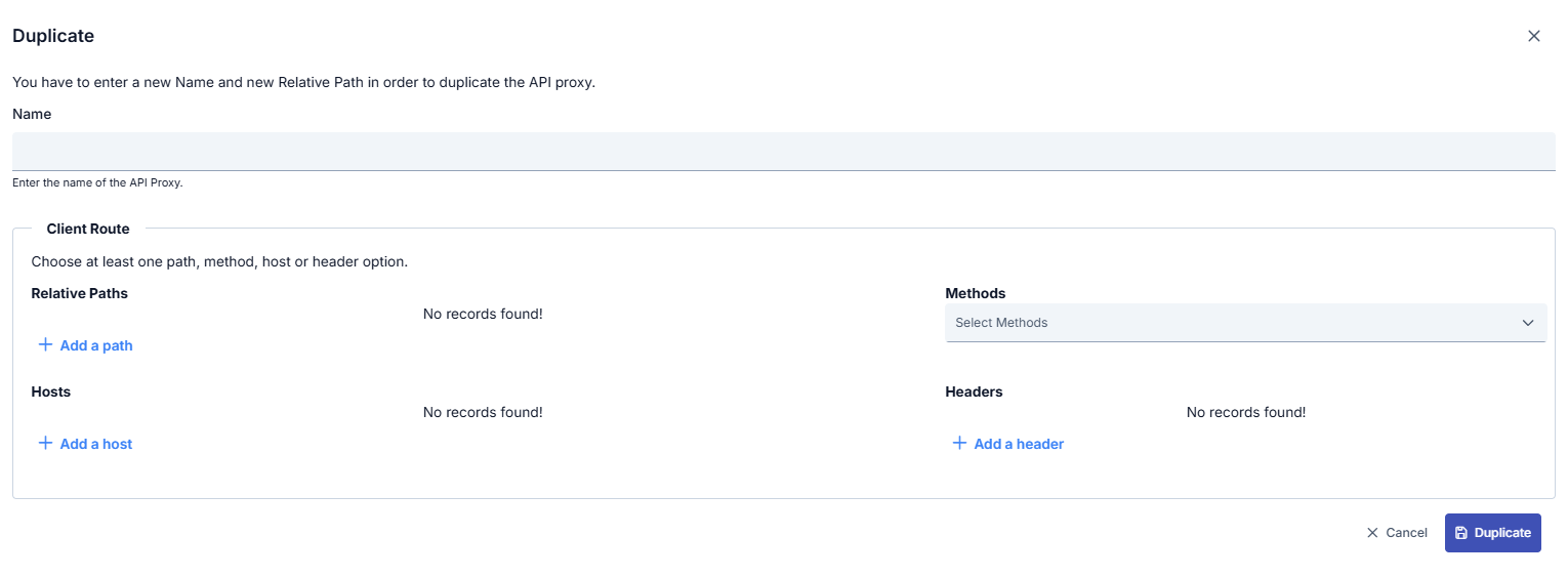 Kopyalama ile oluşturulacak yeni API Proxy için kullanıcıdan yeni bir ad ve yeni bir geçit adresi girmesi istenir.
