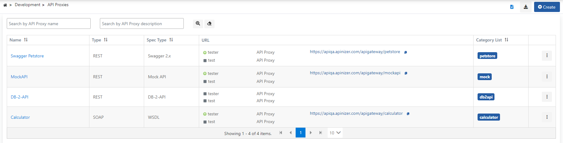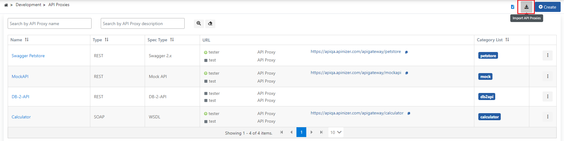 Arayüz açıldığında API Proxy listesi aşağıdaki gibi görüntülenir.