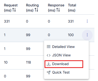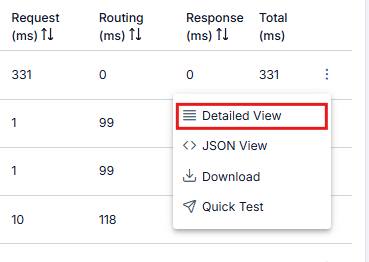 Tabloda görünen log kayıtlarının her birisi, istemciden bu API Proxy'e gelen bir istek ve o isteğe verilen yanıt mesajına aittir. Bu mesaja ilişkin aşağıdaki işlemler yapılabilir.
