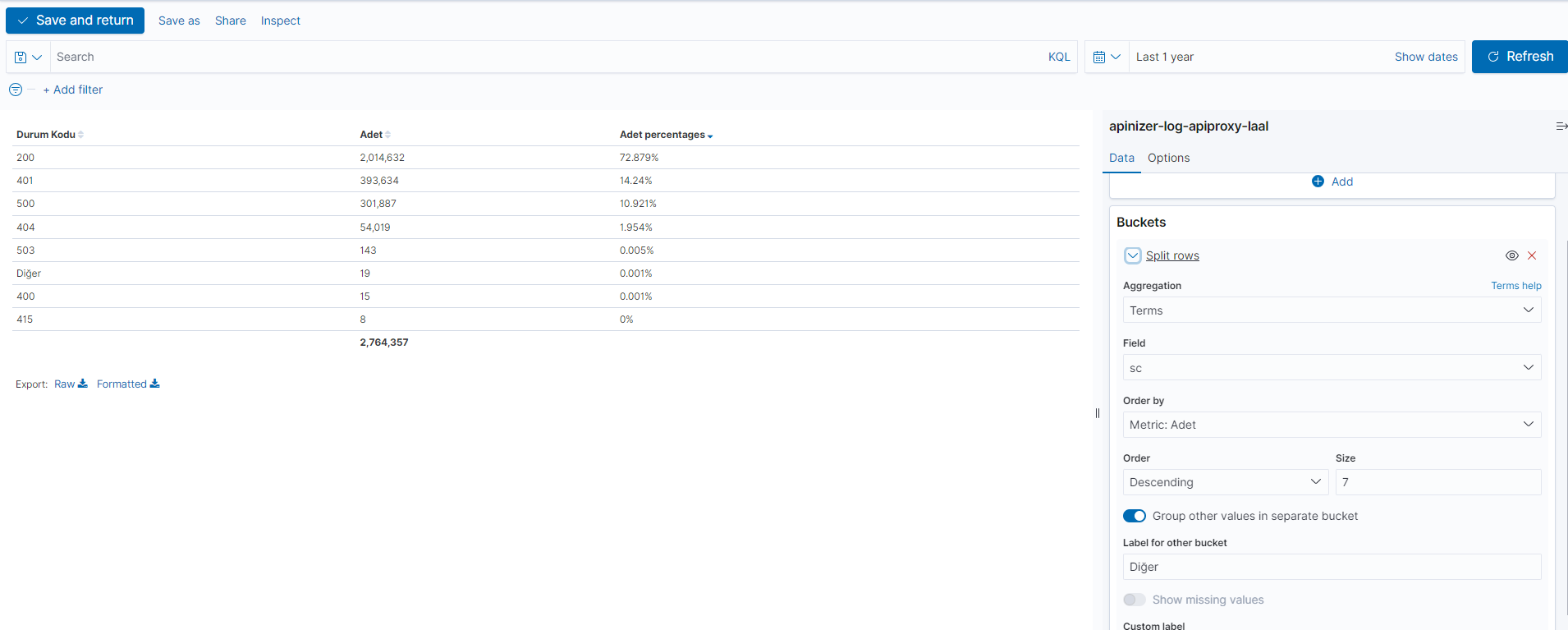 | Buckets (Veri Kümesinde Hangi Bilgilerin Bulunacağı) | Terms | apmn(API Proxy Method ismi) |