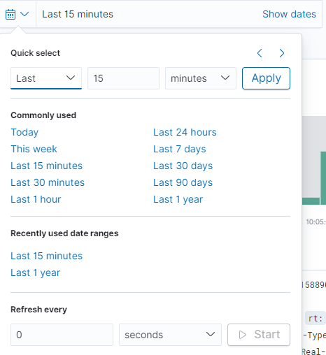 Yeşil ile işaretlenmiş kutucuğa tıklarsanız, verileri filtrelemek için kullanılabilir. Bu da KQL (Kibana Query Language) sorgusu gibi işlev görür.