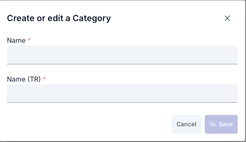 Ad (TR) (Name(TR)) | Portal ayarlarında çoklu dil desteği aktifse bu alan da görüntülenir. Kategorinin Türkçe karşılığı buraya yazılır. Kullanıcı portalı Türkçe dilinde görüntülüyorsa kategori adı bu alandaki değer üzerinden gösterilir. |