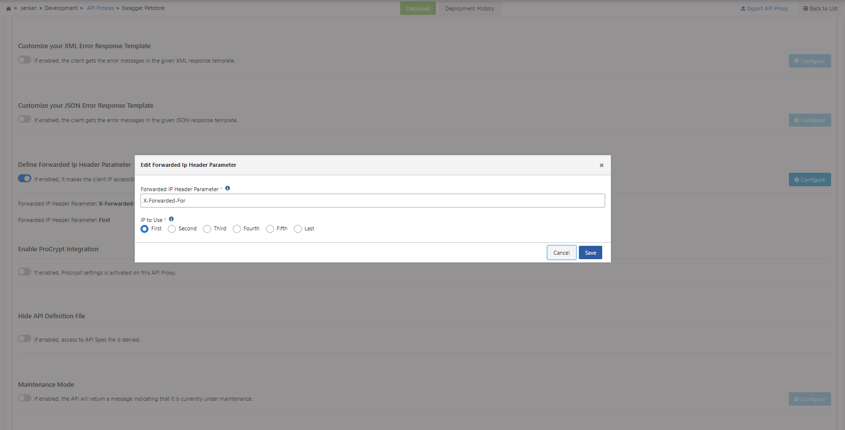 Apinizer üzerinden, X-Forwarded-For (XFF) header bilgisi kullanılarak, isteklerde (request) istemcinin (client) gerçek IP adresi belirlenebilir.