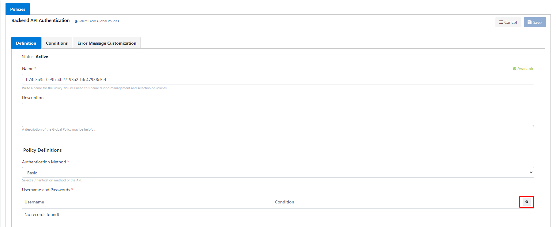 Bazen Backend API'ye farklı kullanıcılar ile erişilmek istenebilir. Bu durumda birden fazla kullanıcı adı ve parolası ile birlikte bu ikilinin hangi durumda çalışması isteniyorsa ilgili durumu ifade eden koşul girilir.