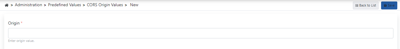 Yönetim → Sistem Ayarları → Ön Tanımlı Değerler → CORS Orijin Değerleri ekranından +Yeni butonuna tıklayınız.