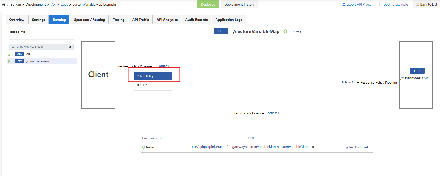 Bu senaryoda, Apinizer üzerinde bir Mock API oluşturulacak. Yapılacak istekte, script kullanarak customVariableMap değişkenine stop=true değeri eklenecektir.