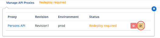 API Proxy'i deploy etmek için API Proxy'leri Yönet (Manage API Proxies) linkine tıklanarak deploy simgesine basılır.