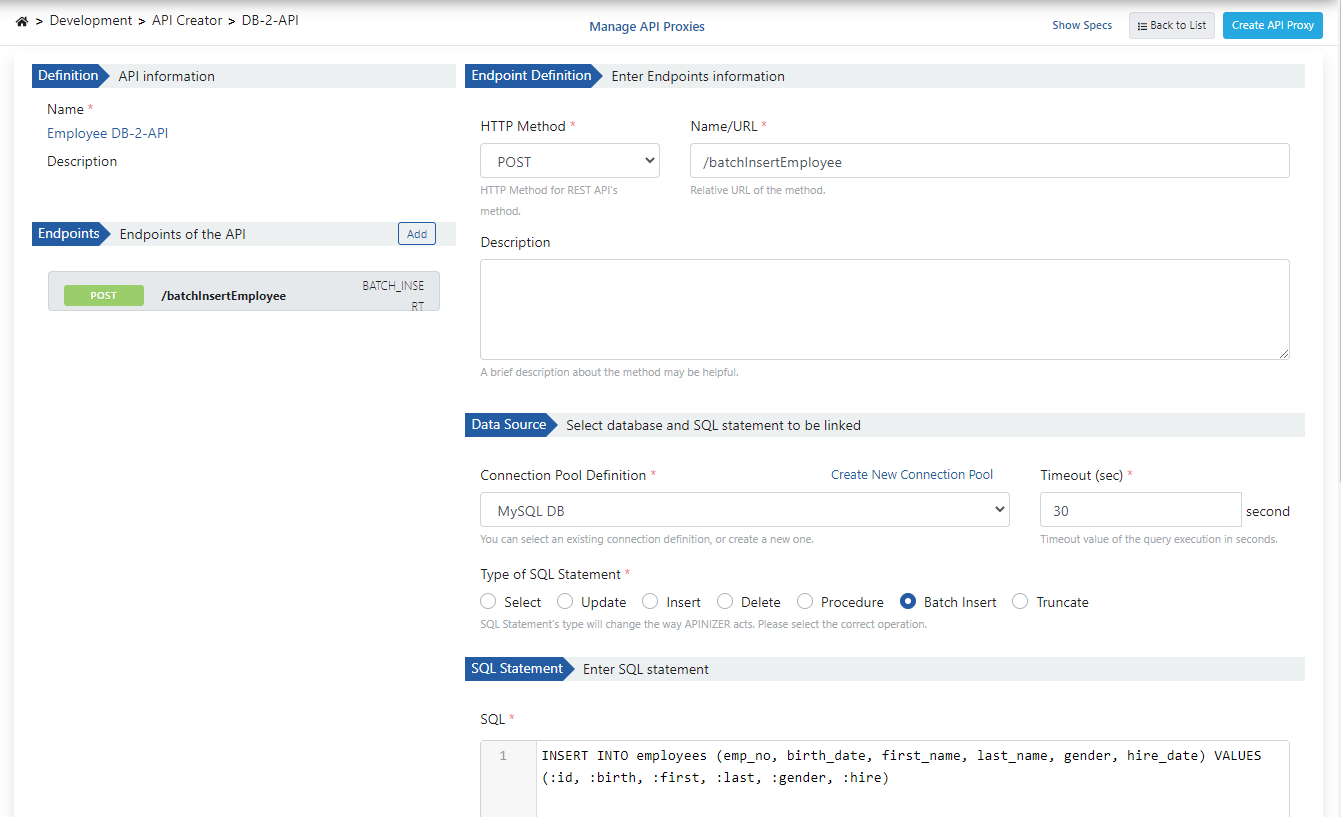 Bu senaryoda Apinizer Platformu'nda DB-2-API üzerinde Batch Insert kullanımı anlatılacaktır.