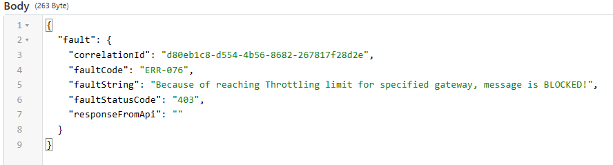 Senaryo uygulandığında sınırlamaya takılan istekler için kullanıcıya hata mesajı aşağıdaki şekilde dönülür: