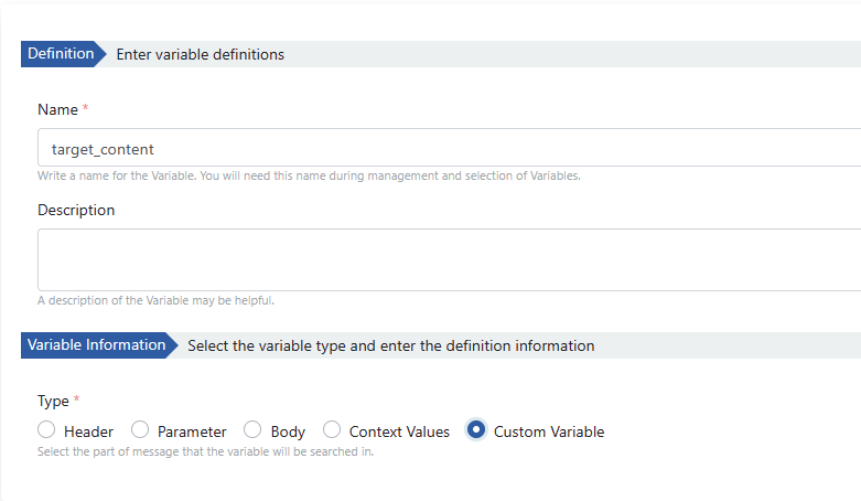 Öncelikle bir adet Custom Variable oluşturulur. Bu tür değişkenler, sadece kullanıldığı akışta yaşamaktadırlar.