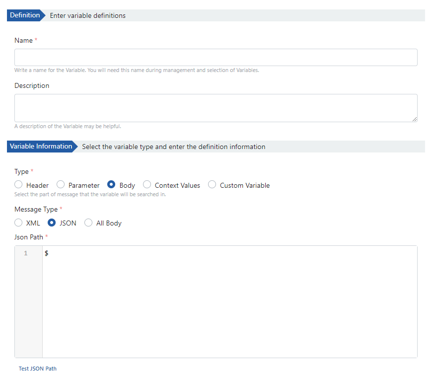 JSON/XML Path | İstemciden (client) gelen isteğin değerini almak için gerekli olan JSON/XPath bilgilerinin girildiği alandır. |