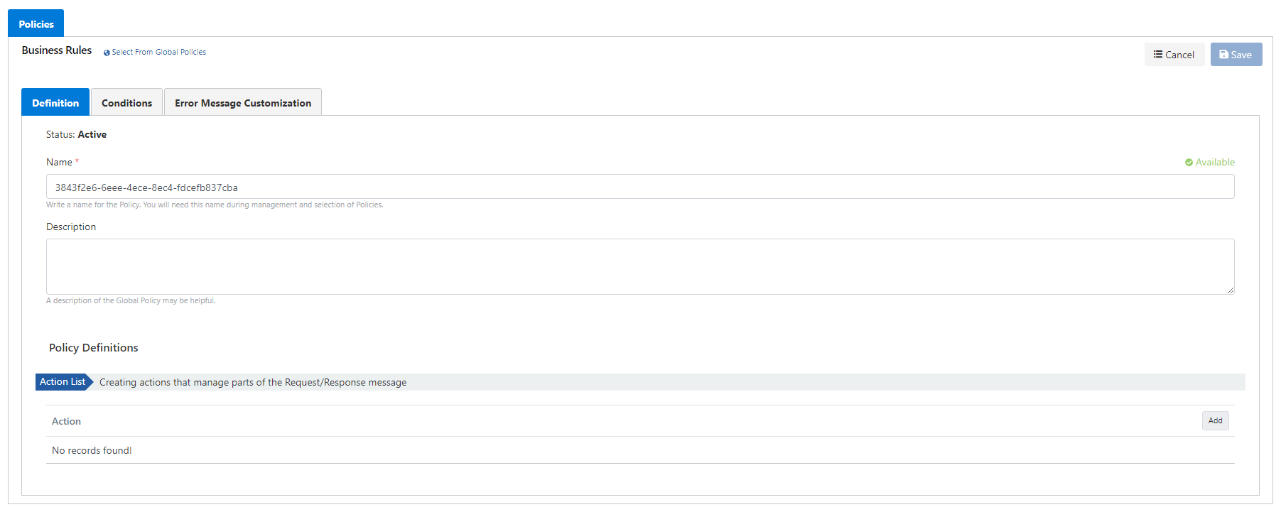 Koşullar ve Hata Mesajı Özelleştirme panellerinin açıklamasını görüntülemek için Politikalar (Policies) sayfasını ziyaret edebilirsiniz.