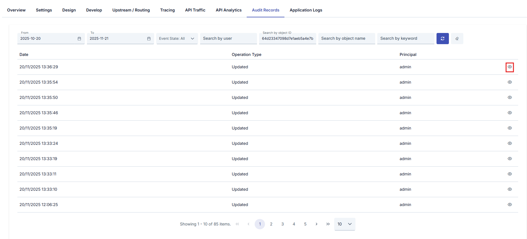 API Proxy ile ilgili yapılan bütün işlemler için aşağıdaki soruların cevapları bulunabilecek şekilde izleme kayıtları saklanır: