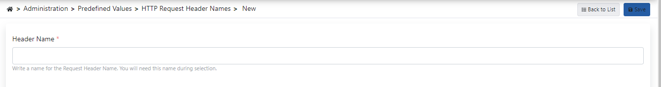 Yönetim → Sistem Ayarları → Ön Tanımlı Değerler → İstek Başlık Adları ekranından +Yeni butonuna tıklayınız.