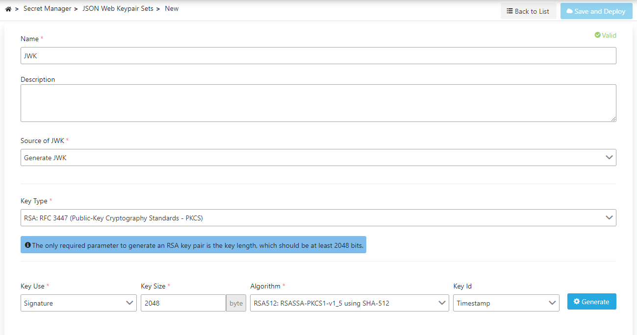 Algoritma (Algorithm) | Oluşturulacak JWK'nın algoritmasıdır. |