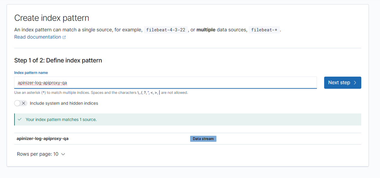 Kurulum sonrası Kibana'da, Stack Management → Index Patterns sayfasında, 'Create Index Pattern' bölümünden yeni bir index pattern oluşturulabilir: