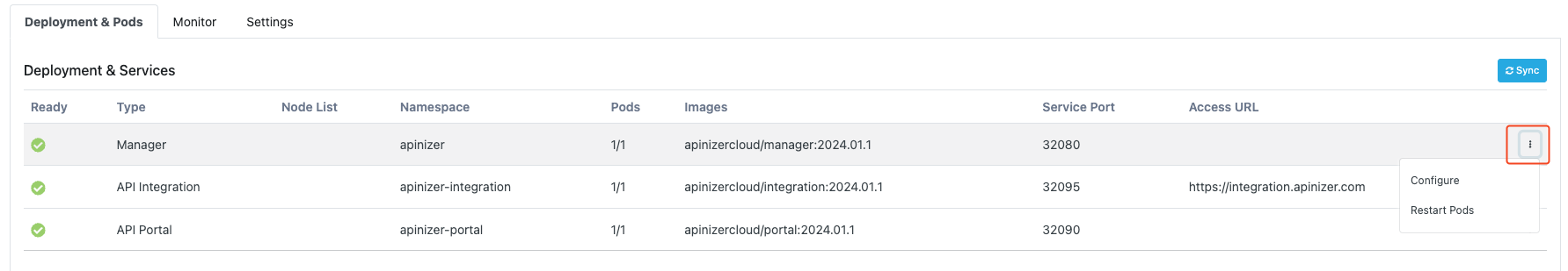 Erişim Adresi/Apinizer Management API URL (Access URL) | Deployment erişim adresinin girildiği alandır. |