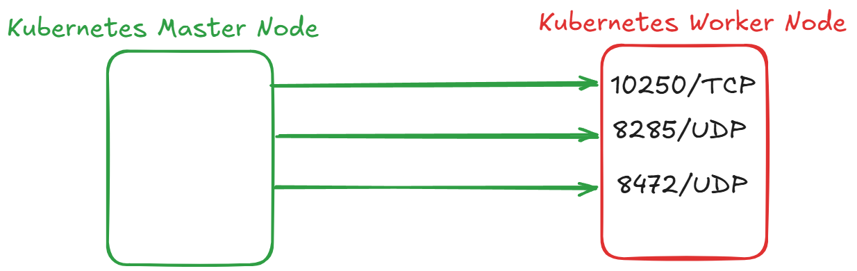 Diyagramda belirtilen bağlantı noktaları, Kubernetes Worker Node'larının Master Node'larla kesintisiz iletişim kurabilmesi için gereklidir. Bu portlar, cluster'ın doğru şekilde çalışması için tüm Worker Node'lardan Master Node'lara açık olmalıdır.