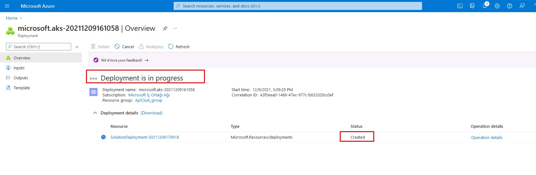 Ortamı yükleme işlemi tahminen 3 dakika içinde AKS'ya yüklenmiş olacaktır.