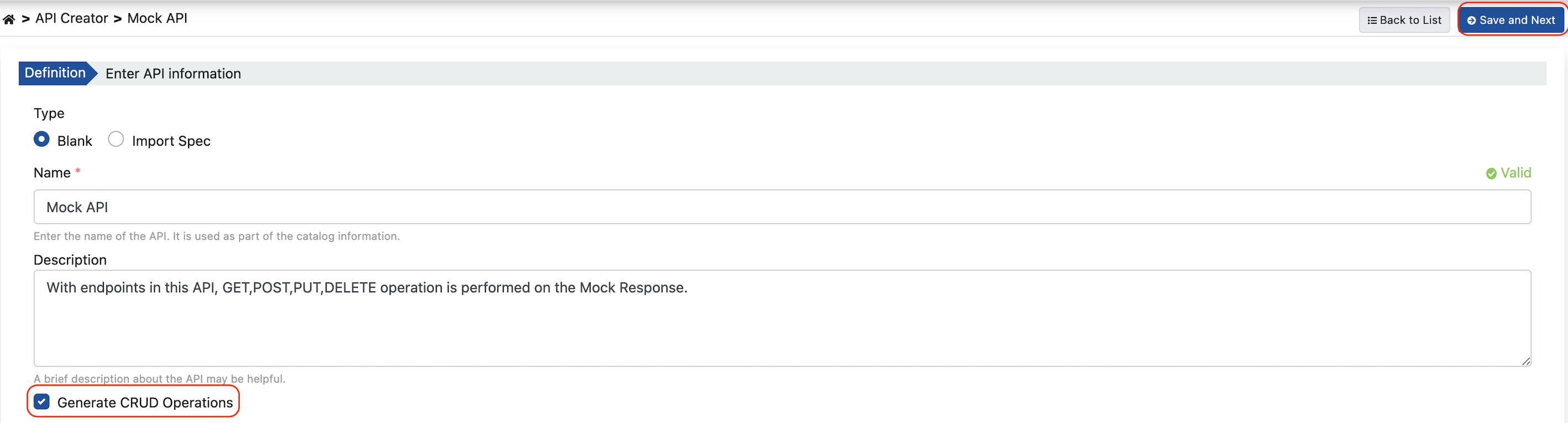 | Generate CRUD Operations | Mock API için GET,POST,PUT ve DELETE tiplerinde hazır metot/endpoint'ler oluşturulması istenirse seçilir. |