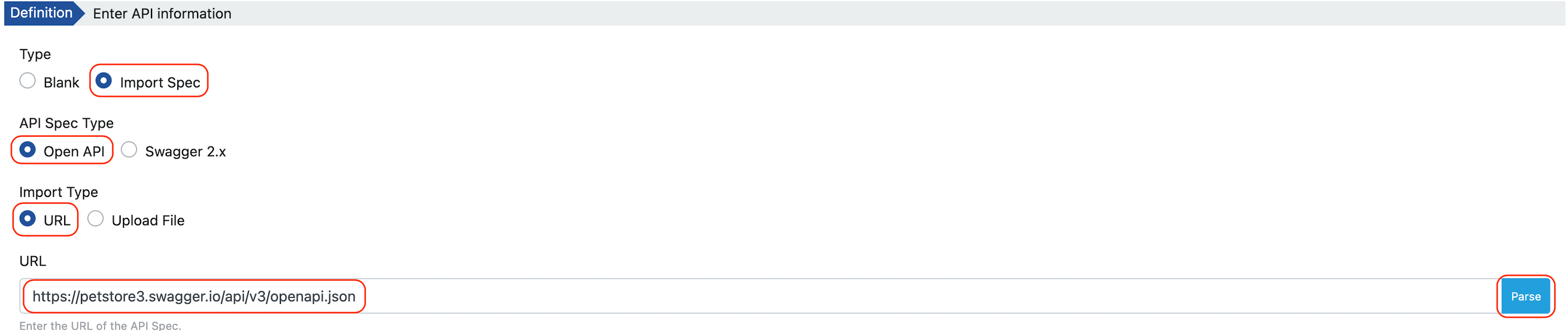 (Import Type) | Yüklenecek Spec dosyasının tür bilgisidir. Desteklenen tipler: URL, Upload File |