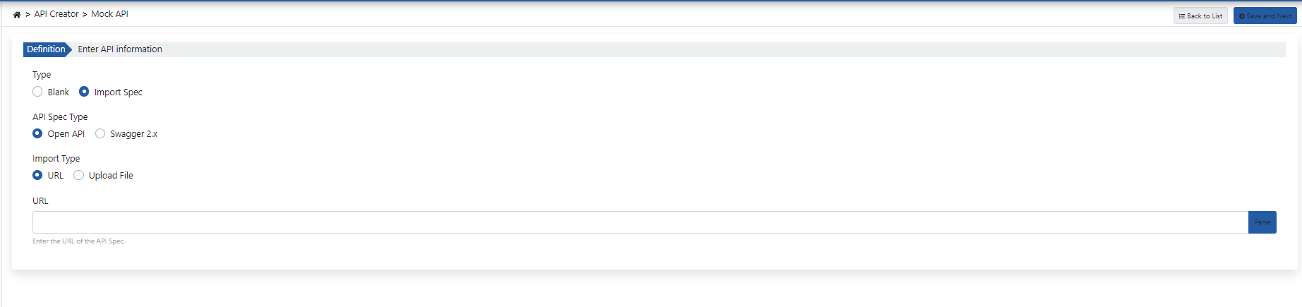 - API Spec Type ifadesi altında yer alan seçenekler eklenecek olan API'nin hangi tipte olduğu belirtilir.