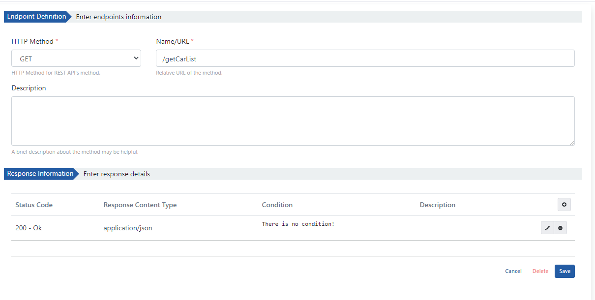 - Yine bu alan içerisinde bulunan Add butonu ile yeni bir endpoint eklenebilir ya da var olan endpoint'ler seçilerek bunlar üzerinde de değişiklikler yapılabilir.