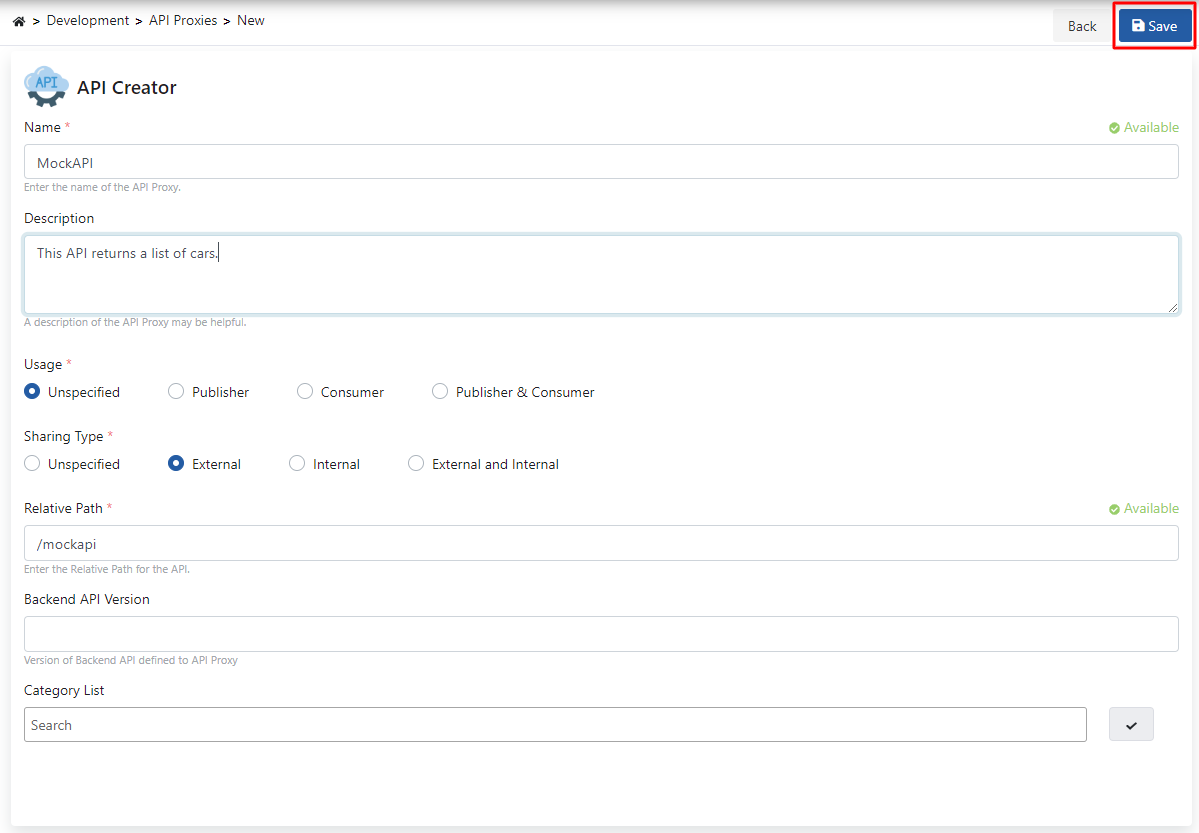 Proxy'ye uygun bir Relative Path verilir ve sağ üst köşede yer alan Save butonuna tıklanır.