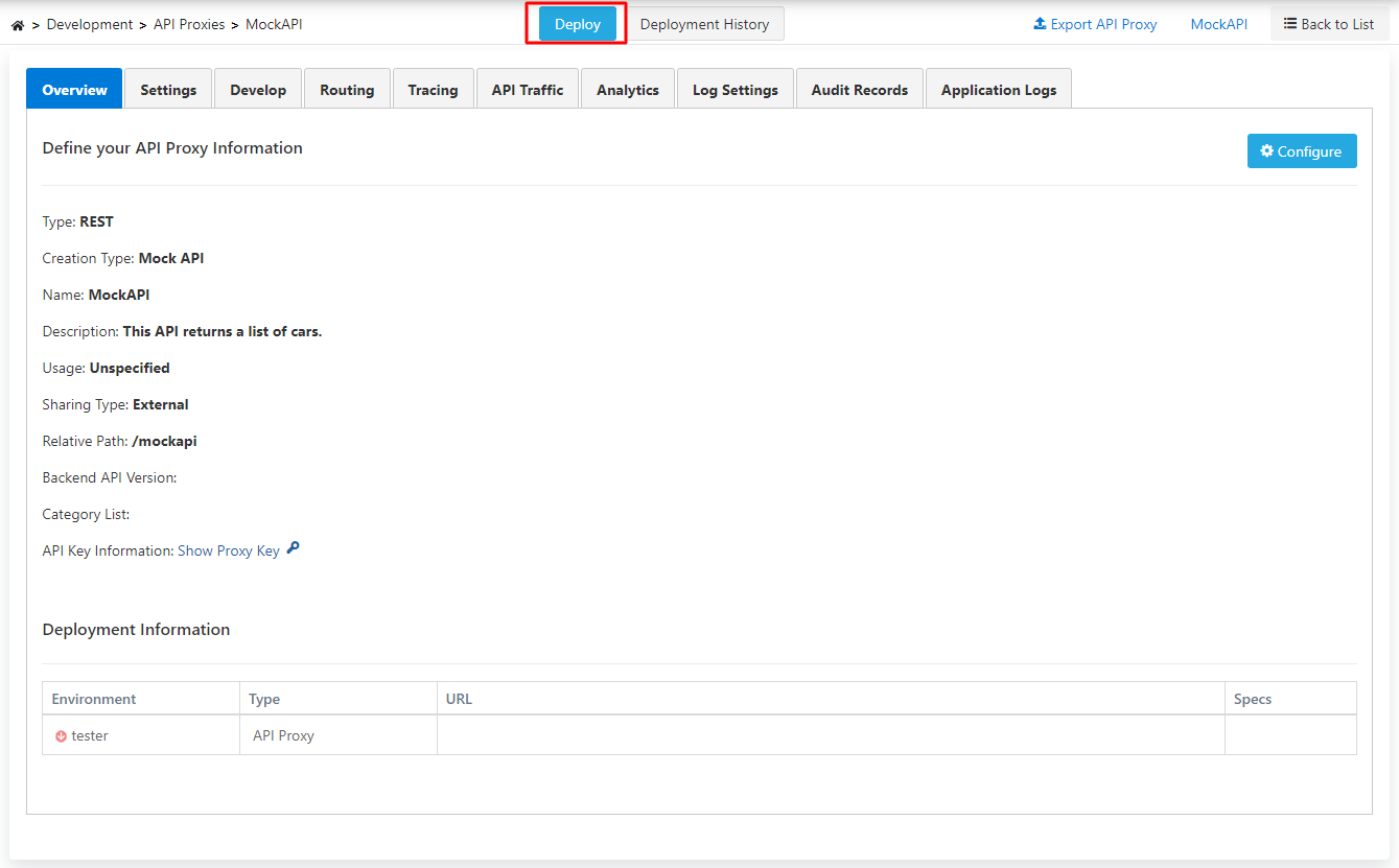 Deploy butonuna tıklanır ve proxy deploy edilir.