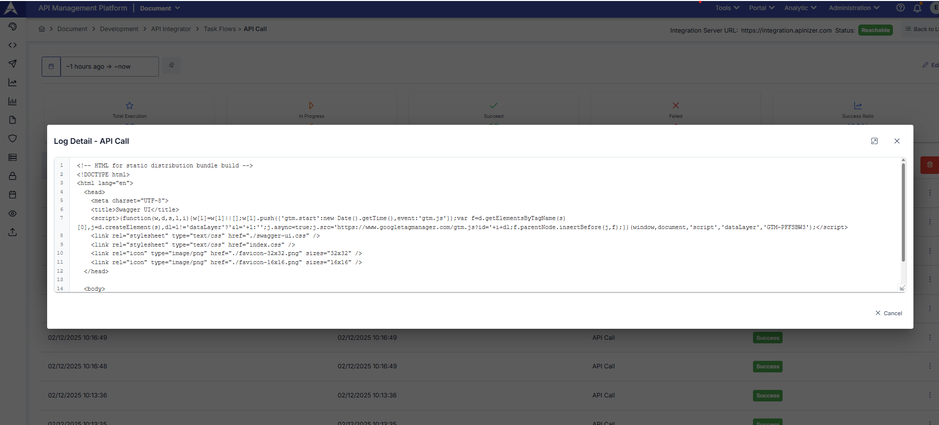 Akışta çalıştırılan görevlerin log bilgilerini içeren dialog görseline aşağıda yer verilmiştir: