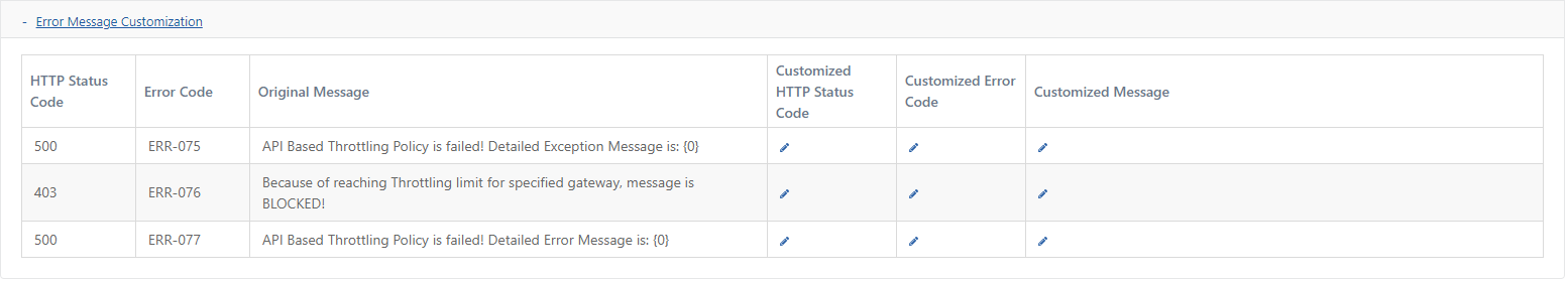 | Customized Error Code | Farklı hata kodu belirlenir |