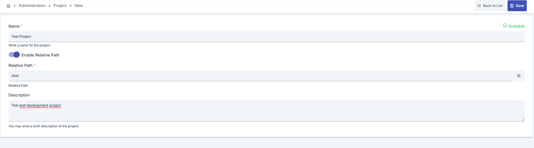 Açıklama (Description) | Oluşturulan proje ile ilgili yönetimi kolaylaştırmak için açıklama yazılabilir. |