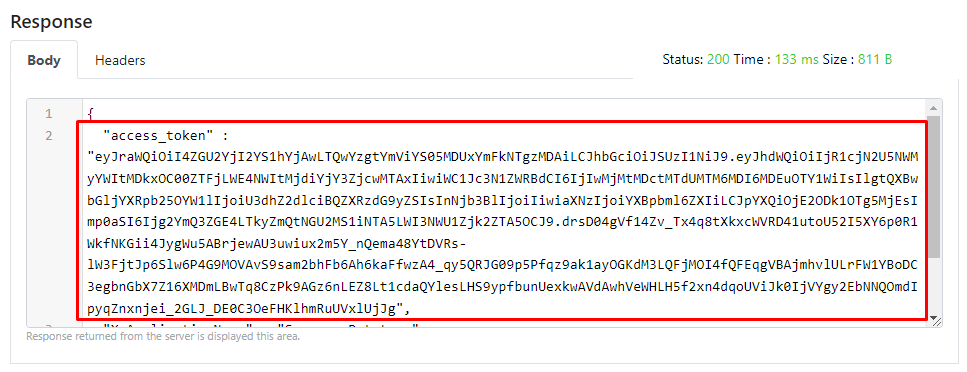Yanıt içerisinde yer alan access_token bilgisi JWT Authentication poliçesi oluşturulan proxy'de kullanmak için oluşturulmuştur.