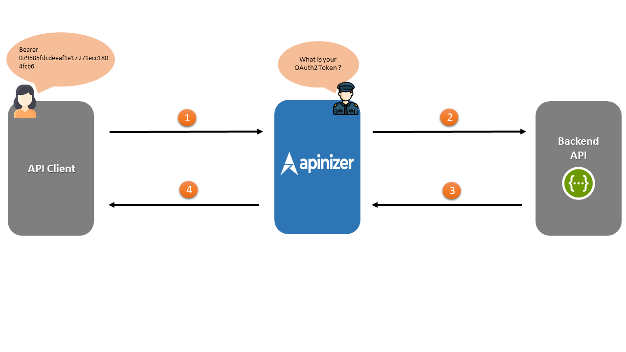 - Apinizer içerisinde yer alan Security Manager, API Client'tan OAuth2 türünde authentication bilgisini ister. Bu authentication doğru ise iki numaralı alana geçiş yapılır.