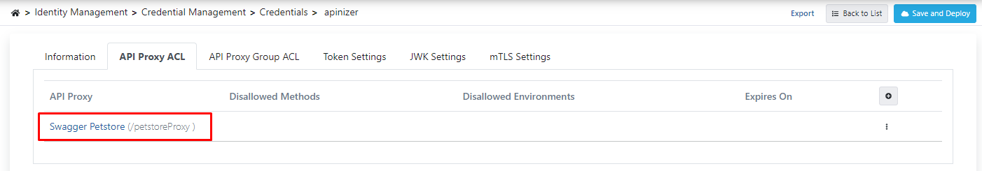 Daha önceden boş bir şekilde görünen listede artık bir adet API Proxy bulunmaktadır.