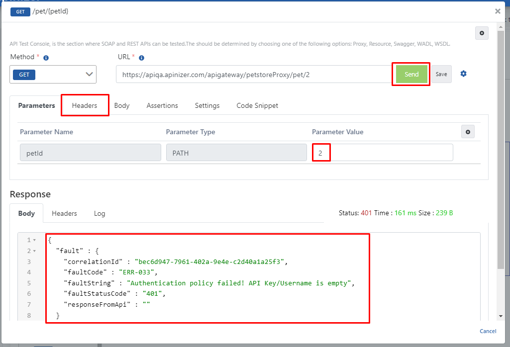 Bu senaryoda Swagger Petstore isimli REST mimaride oluşturulmuş bir API'ye, Plain-Text Authentication politikasının uygulanması test edilecektir.