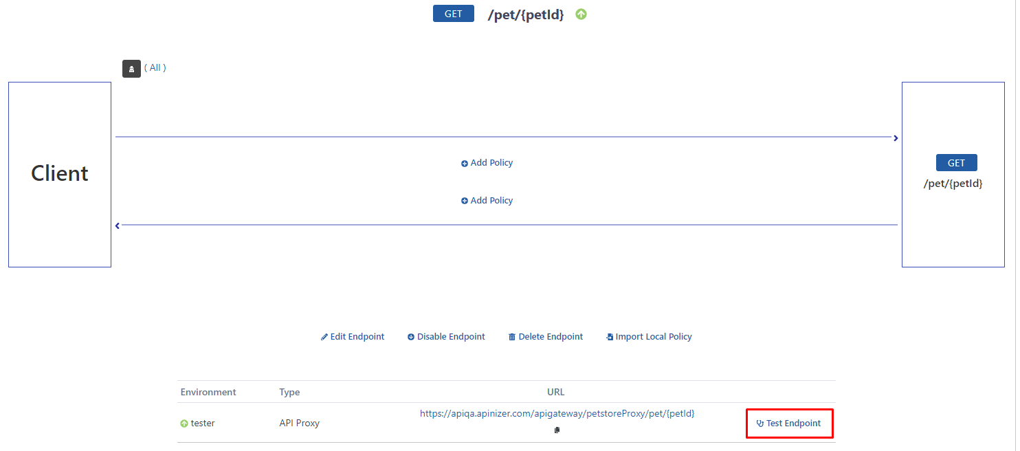 /pet/{petId} gibi bir endpoint seçildikten sonra, Test Endpoint butonuna tıklanır.
